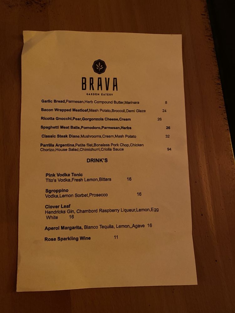 Brava Garden Eatery, a delightful fusion of Italian and Argentine cuisine, offers a unique dining experience in Pleasanton, CA. With a range of vegan and vegetarian options, this charming eatery caters to all dietary preferences. The menu showcases delectable dishes such as Carbonara, Lomo, and Risotto Mar, each prepared with quality ingredients and expert craftsmanship. Guests can enjoy happy hour specials like Brussel Sprouts and Habanero Fries, paired with handcrafted cocktails like Espresso Martini and Watermelon Marg. The cozy ambiance, gender-neutral restrooms, and eco-friendly practices make dining at Brava Garden Eatery a guilt-free pleasure. Whether you're looking for a romantic dinner or a fun gathering with friends, this spot ticks all the boxes. Don't miss out on the ultimate dining experience at Brava Garden Eatery.